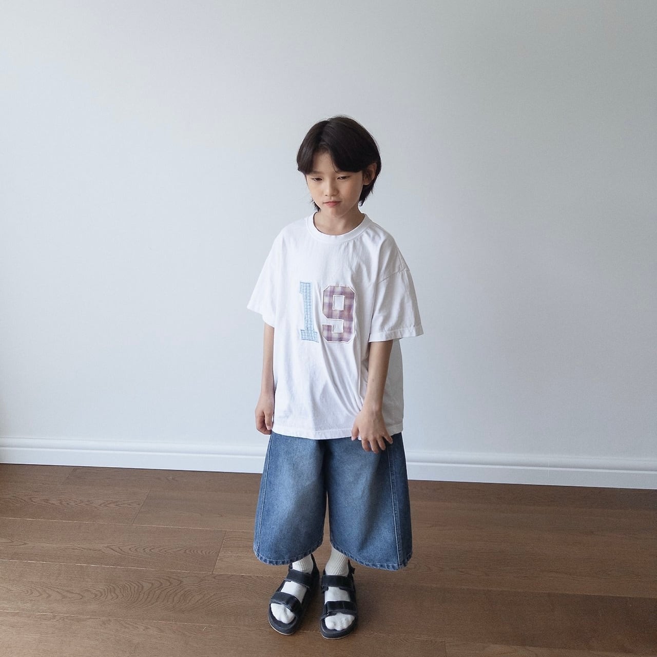 ワイドシルエットのバミューダデニム。